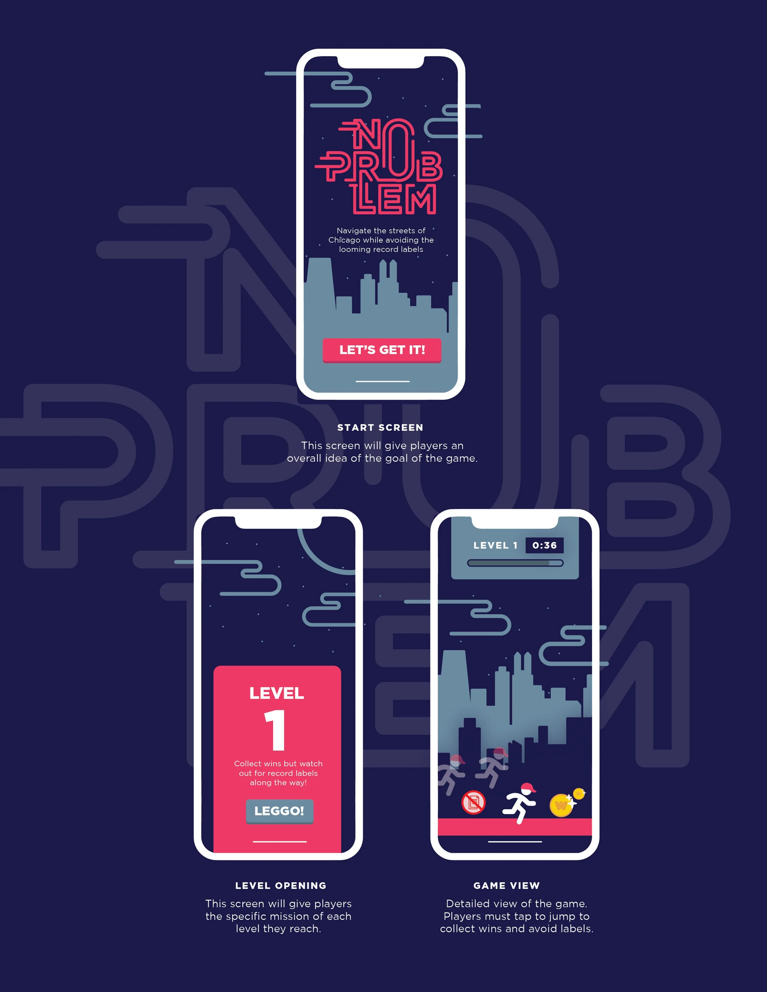 The goal of this project was to design a beer brand based on a musical artist of choice. The subject of my design is hip-hop artist Chance the Rapper. I choose to focus on the three groundbreaking mixtapes that helped establish him as a force in the music industry. Due to his popularity and dedicated fan base, I decided to create a set of packaging that could be marketed as a collector’s item for beer fans and Chance fans. Each box holds thee cans of beer, each can representative of each mixtape. Each beer is named after the most loved song from each mixtape. Furthermore, the name 79th Street Brewery comes from the location of Chance’s childhood neighborhood in Chicago, IL, which he often mentions in his music. Additionally, I designed an easy-to-use mobile app game to be played while listening to Chance’s music and enjoying one of his sweet-sour brews.